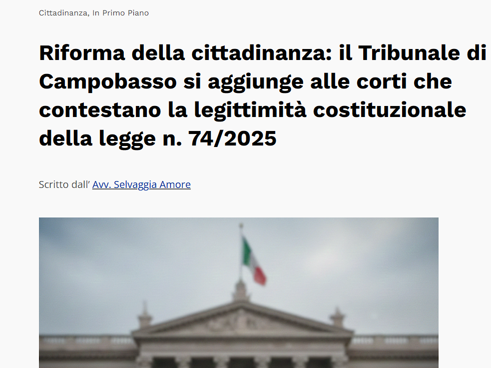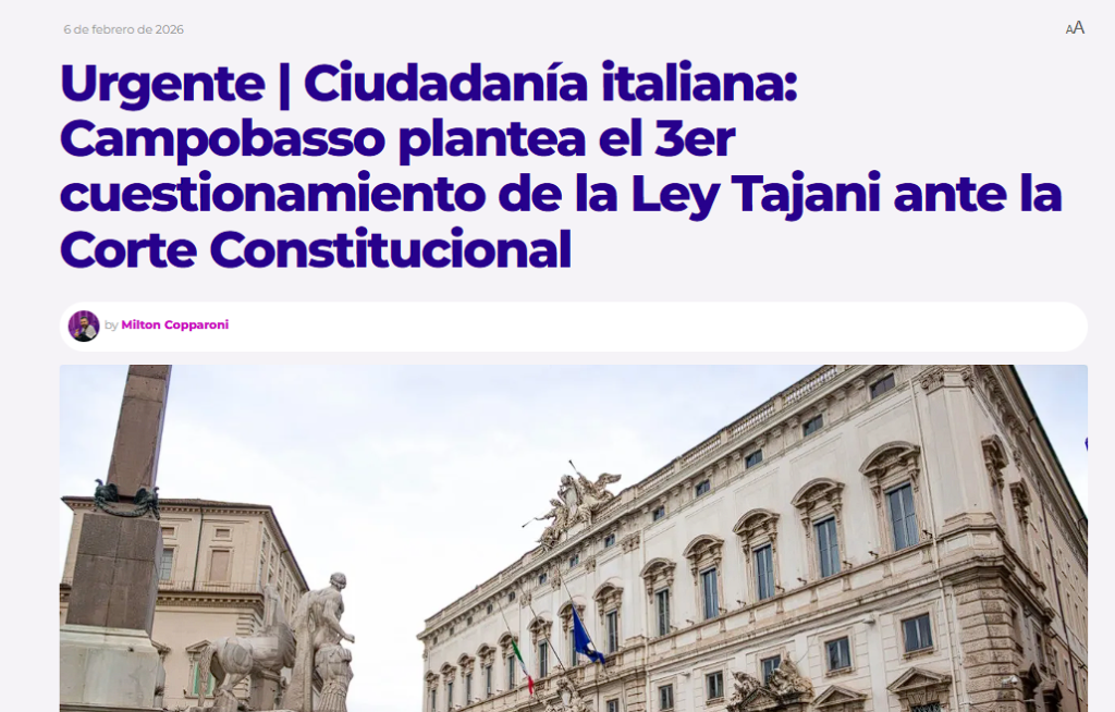 leer nota 06/02/2026: Urgente | Ciudadanía italiana: Campobasso plantea el 3er cuestionamiento de la Ley Tajani ante la Corte Constitucional – InfoCivitano