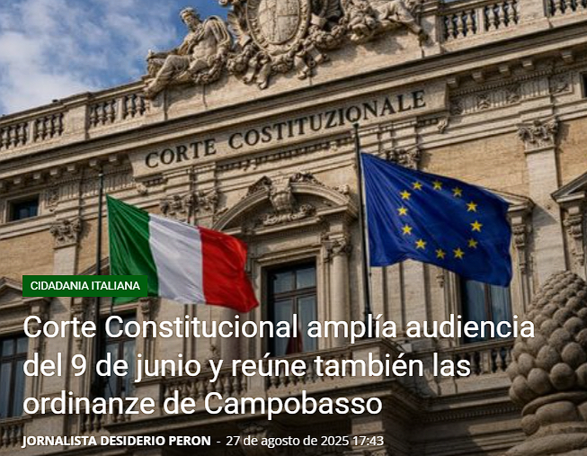 El próximo 9 de junio de 2026, la Corte Costituzionale italiana celebrará una audiencia pública que promete marcar un antes y un después en el derecho de ciudadanía. Lo que inicialmente era un examen de la ordenanza del Tribunal de Mantova, ahora se amplía a tres casos distintos, incluyendo dos ordenanzas del Tribunal de Campobasso (n. 40/2026 y n. 41/2026).