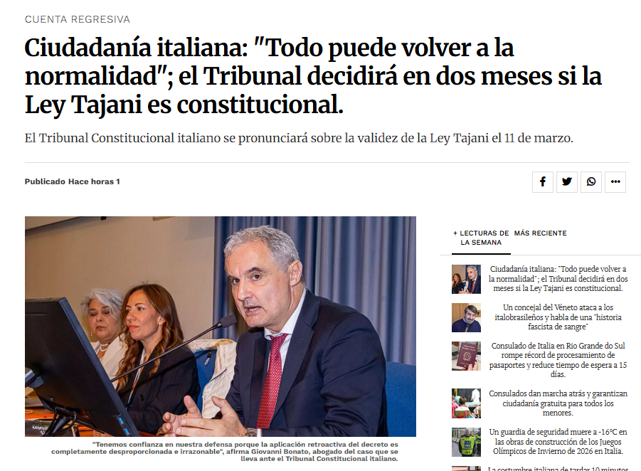 Ciudadanía italiana: “Todo puede volver a la normalidad”; el Tribunal decidirá en dos meses si la Ley Tajani es constitucional.
