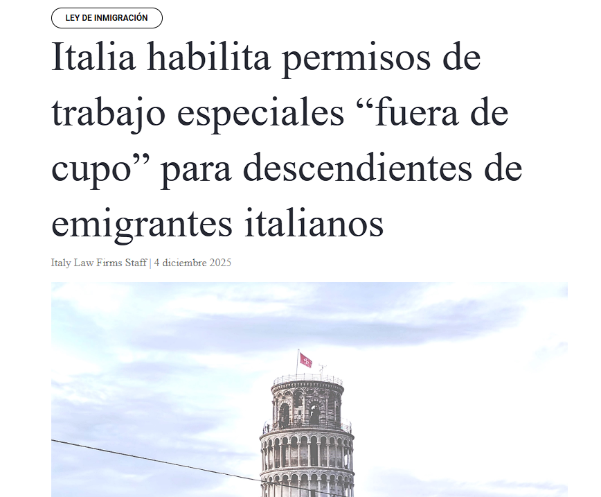 En los últimos días, Italia sorprendió al abrir una nueva vía de permisos de trabajo “fuera de cuota” para descendientes de italianos en países como Argentina, Brasil y Estados Unidos. La medida generó un enorme entusiasmo porque, por primera vez, millones de personas con raíces italianas podrían acceder a un permiso laboral sin depender del Decreto Flussi ni de sus cupos limitados. Sin embargo, junto al optimismo también aparecieron voces más cautas: algunos especialistas celebran la oportunidad histórica, mientras que otros advierten que el proceso será exigente, burocrático y no apto para quienes buscan soluciones rápidas. Entre la ilusión y la prudencia, lo cierto es que estamos ante un cambio profundo que merece ser analizado con claridad.