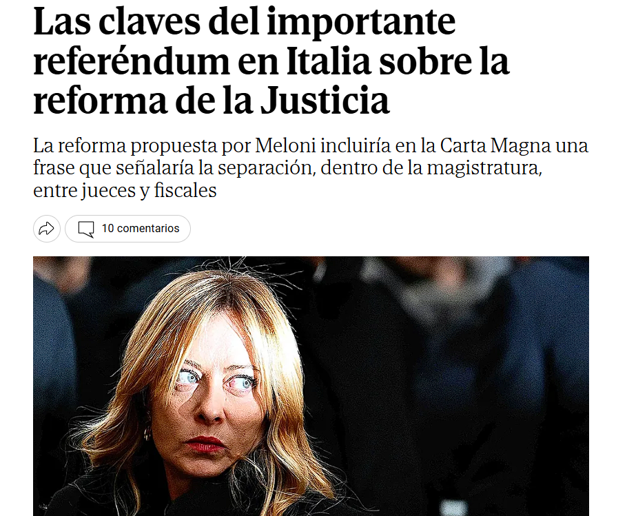 El próximo 23 de marzo de 2026 Italia vivirá un momento clave: el referéndum constitucional sobre la reforma de la justicia impulsada por el gobierno de Giorgia Meloni. La propuesta, conocida como Proyecto Nordio, busca separar la carrera de jueces y fiscales con el argumento de reforzar la imparcialidad del sistema judicial.