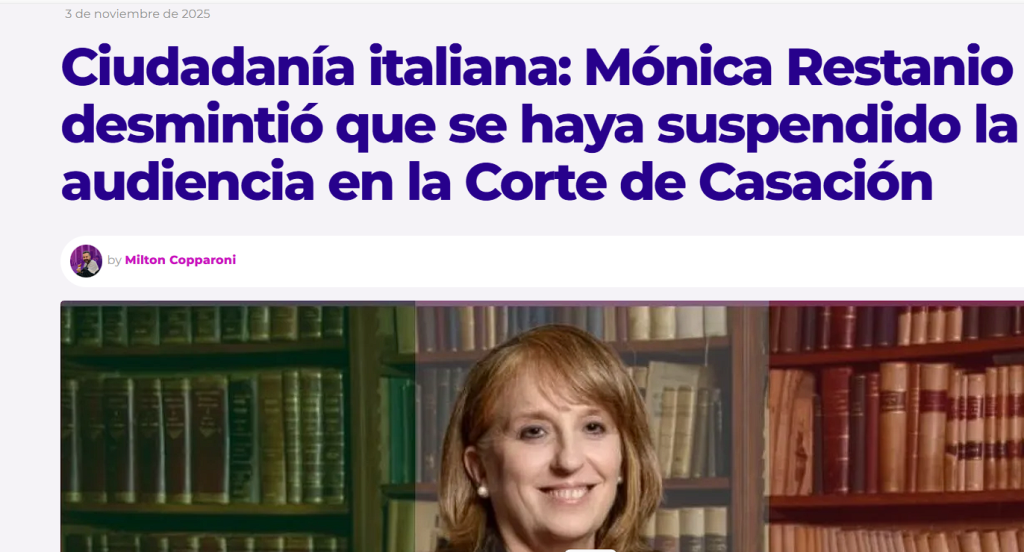 Ciudadanía Italiana: La Corte de Casación no suspendió la audiencia, advierte Mónica Restanio