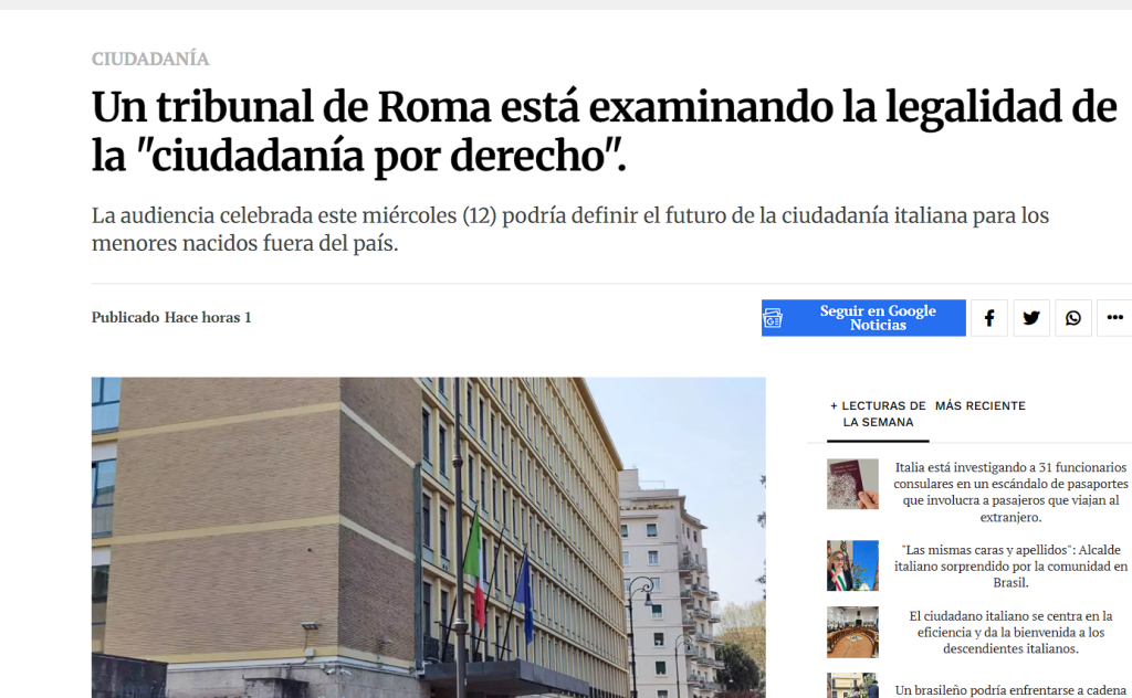 leer nota: 15/11: Un tribunal de Roma está examinando la legalidad de la “ciudadanía por derecho”.